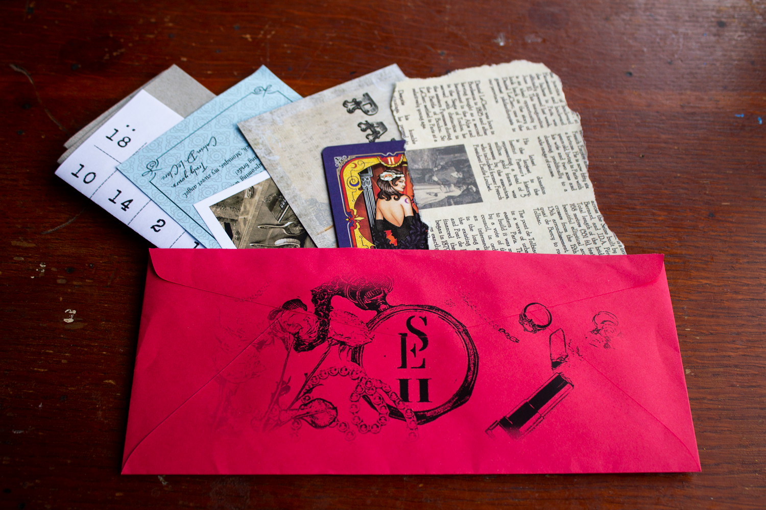 The game follows a similar pattern as the first envelope. You receive a mysterious letter and, on opening it you’re presented with a lot of stuff. In this case, there’s a missing girl and this stuff is everything that was found on her dresser table before she went missing. Including a jewellery box (that must be unlocked), letters, a tarot card, and a ripped up newspaper. Most intriguing!